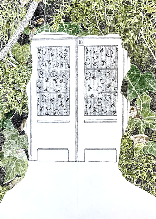 In KHmessen heb ik dit idee uitgeprobeerd. Ik heb veel foto’s gemaakt van de omgeving en van mijn kamer en atelier en andere ruimtes in het gebouw. Daarna maakte ik een aantal test tekeningen om uiteindelijk een serie van 4 tekeningen te gaan maken: Rom 23, Rom 4, Rom 18 en Korridor.